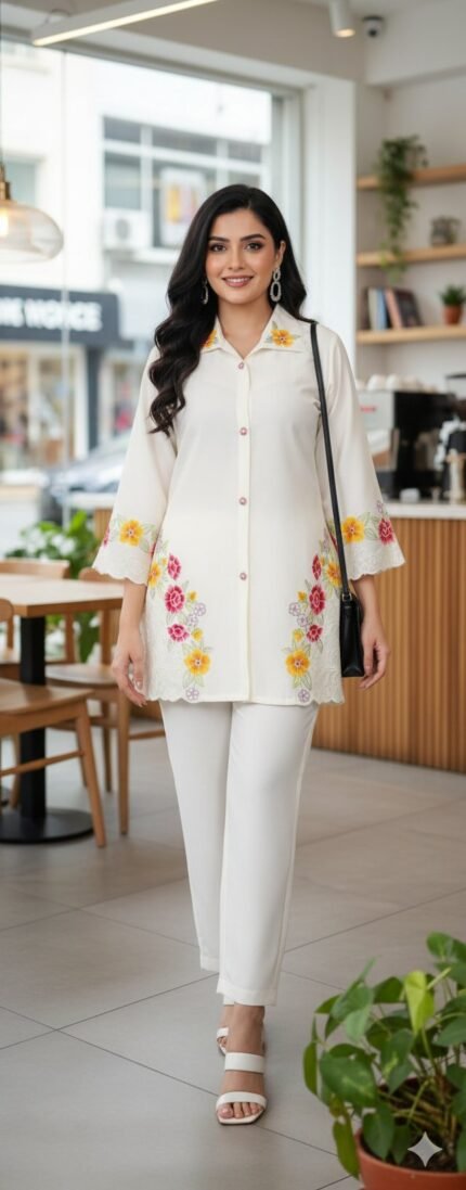 Soft Cotton Dobby Embroidered Co-ord Set – Comfort Summer Edition