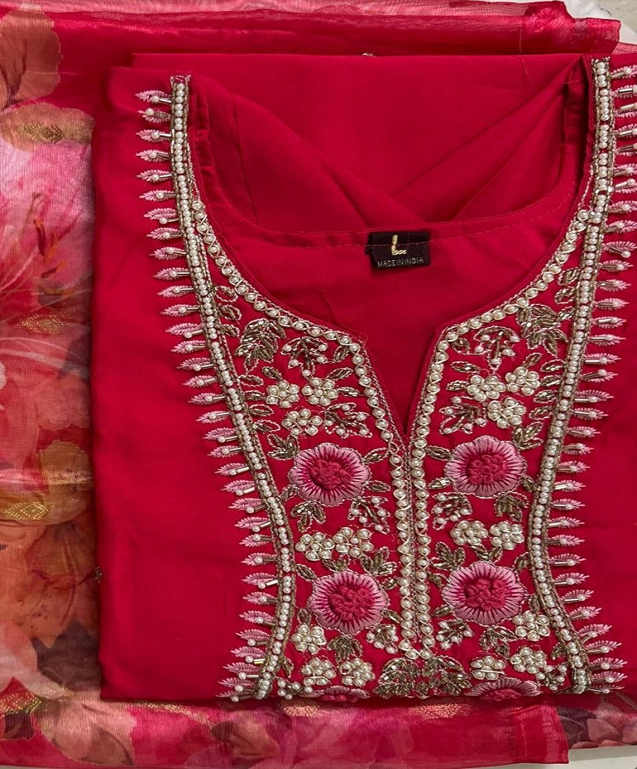 Rayon Suit Set – Pearl & Thread Embroidery Edition
