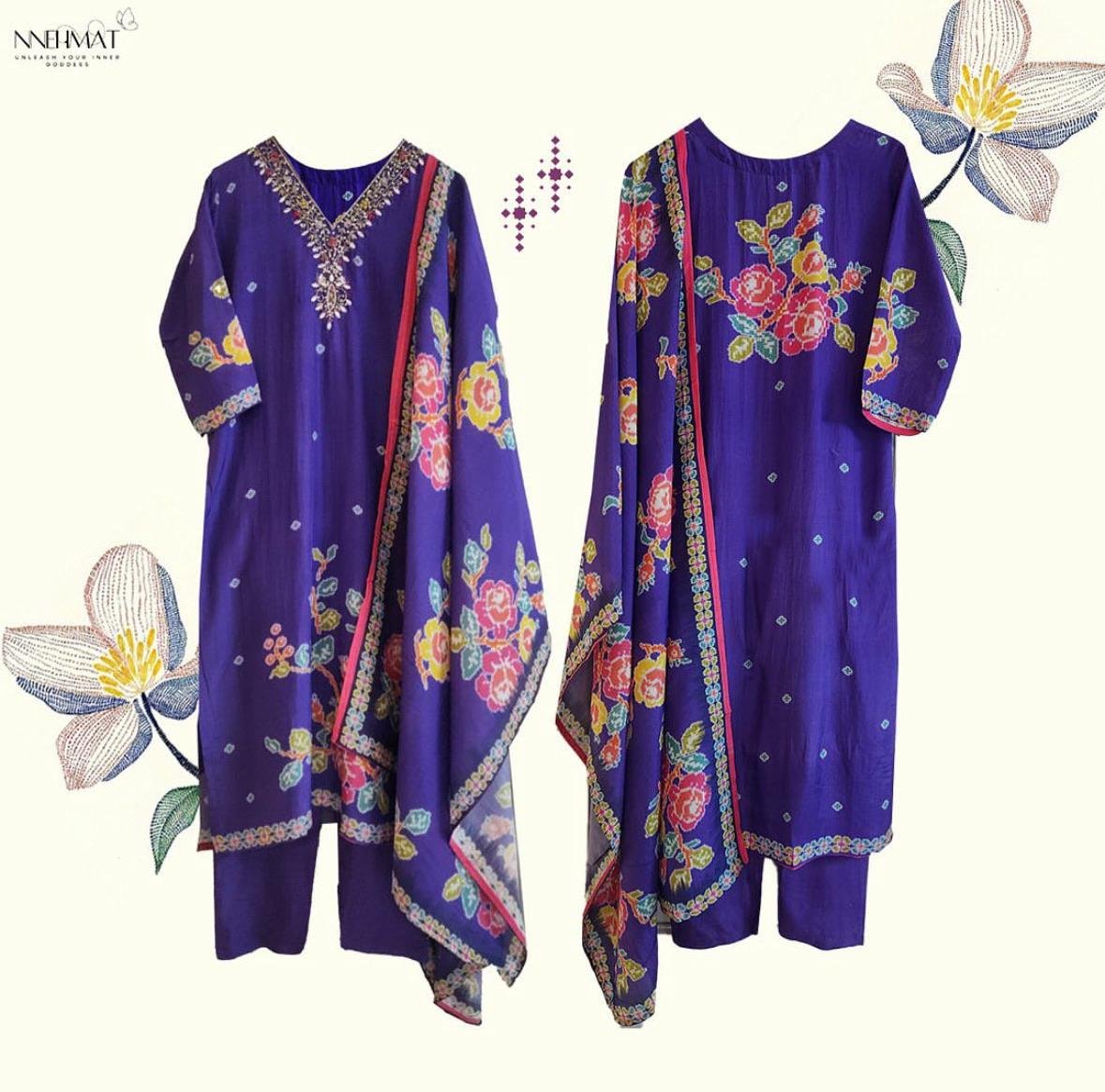 Cotton Muslin Suit Set – Embroidery & Ikat Print Edition